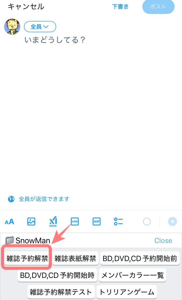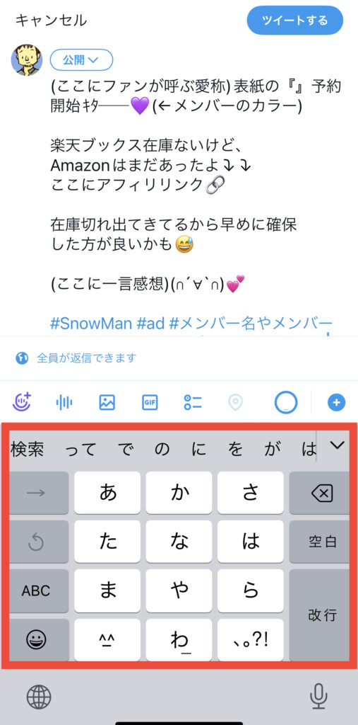 ■WordBoardを使ったツイート作成その1(Snowman雑誌予約)