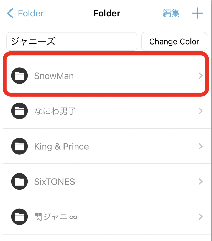 ジャニーズフォルダの中に入ってるフォルダが表示されます。
