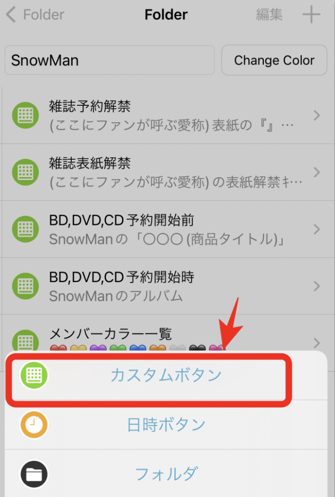フォルダ名の下に、各フォルダ内に設定したショートカットボタン(ポスト)が表示されます。
