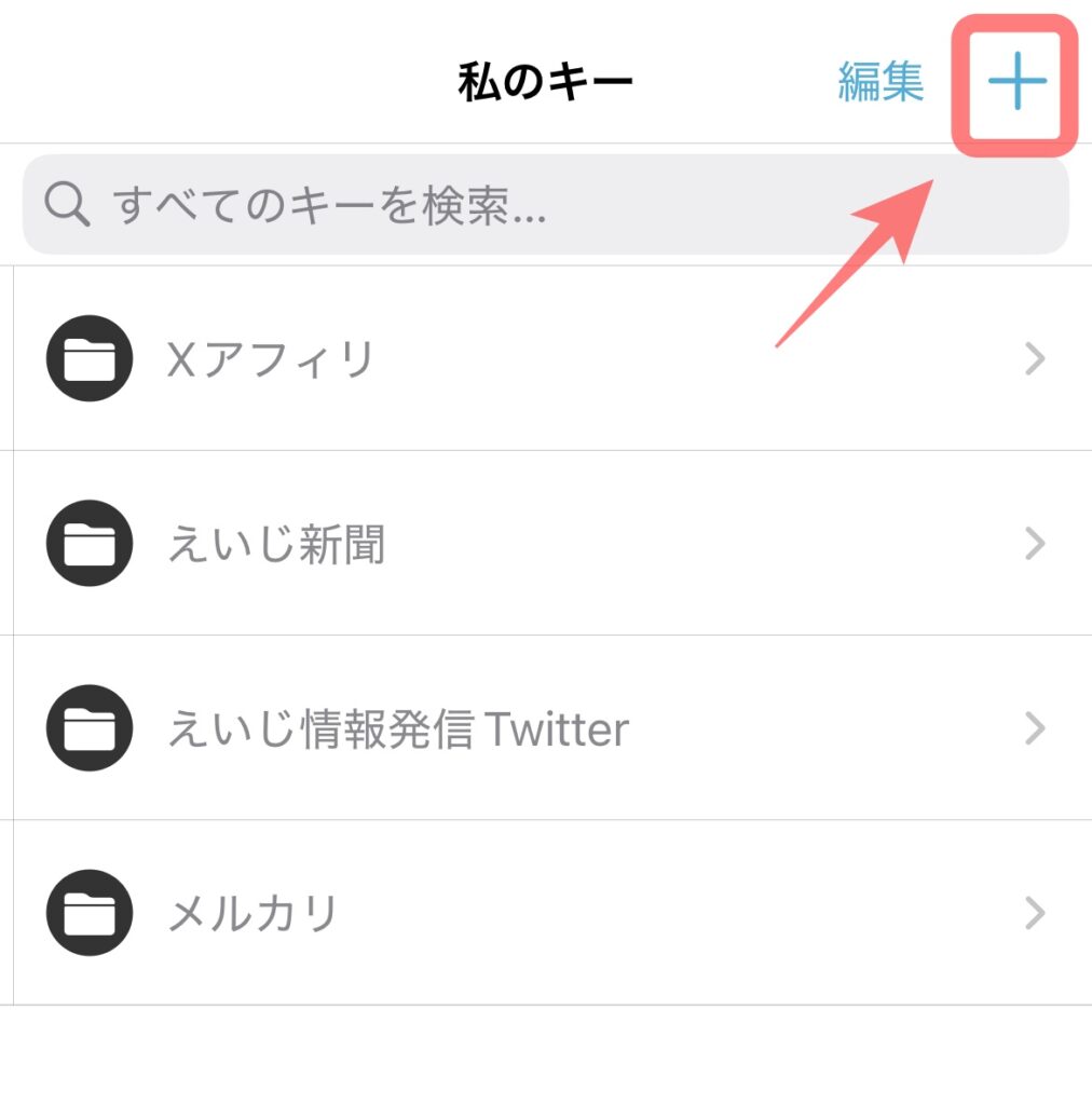 完了をクリックしたら、画像上部の赤枠で囲んだ「私のキー」というところをクリックします。