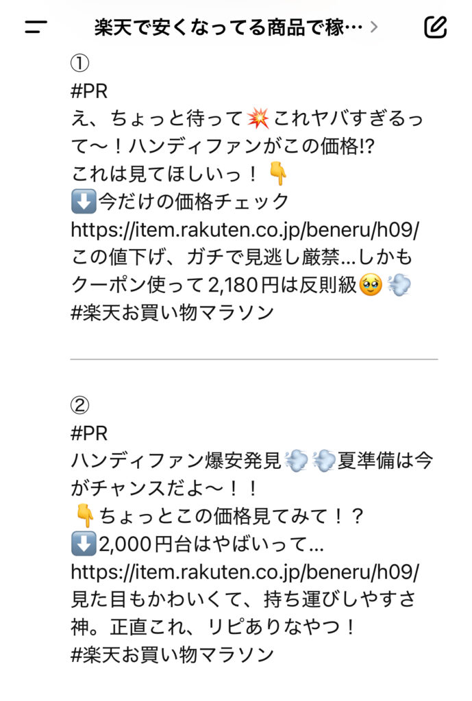 ポスト内の商品URLのとこは、ご自身のアフィリエイトリンクに変えてポストするようにしてください。そうしないと、アフィリエイト報酬が入ってきませんので汗