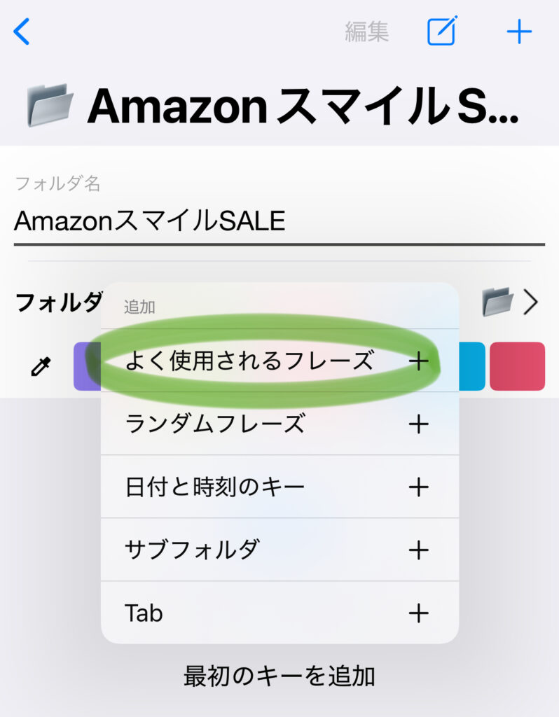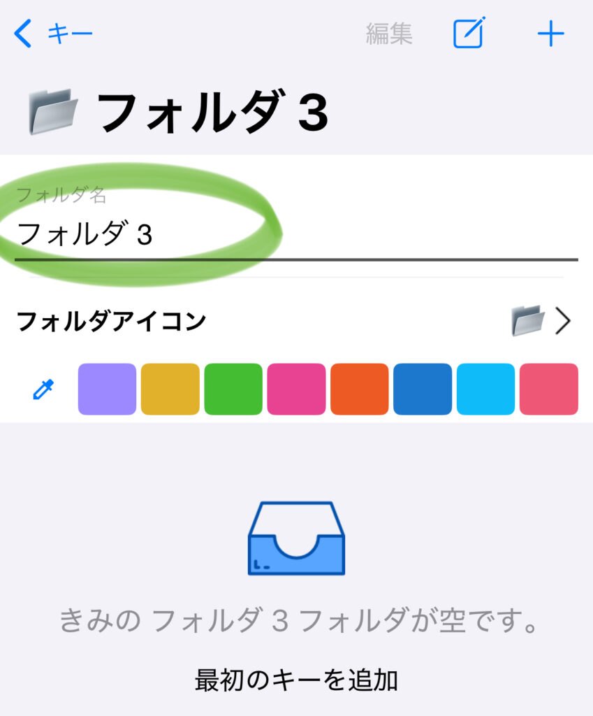 フォルダ名を入力したら、緑で囲んだ「最初のキーを追加」という箇所をクリックします。