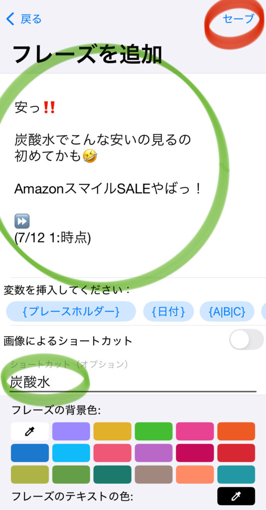 ここに入力した言葉が、ポストを呼び出す時のショートカットボタンとなります。