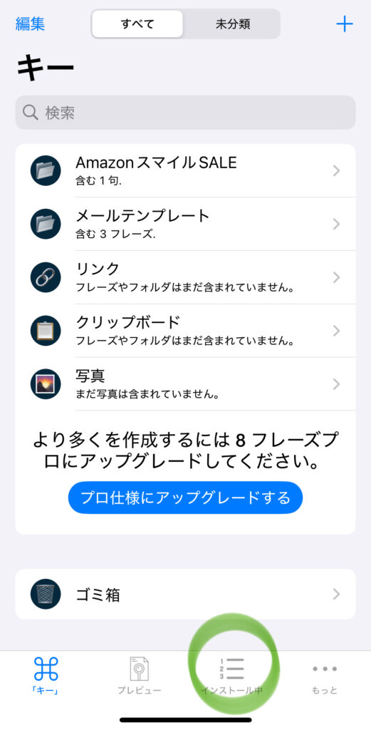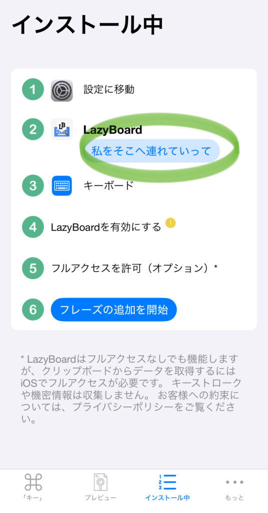 Lazy Boardのアプリを開いたら、緑で囲んだ「インストール中」というところをクリックします。